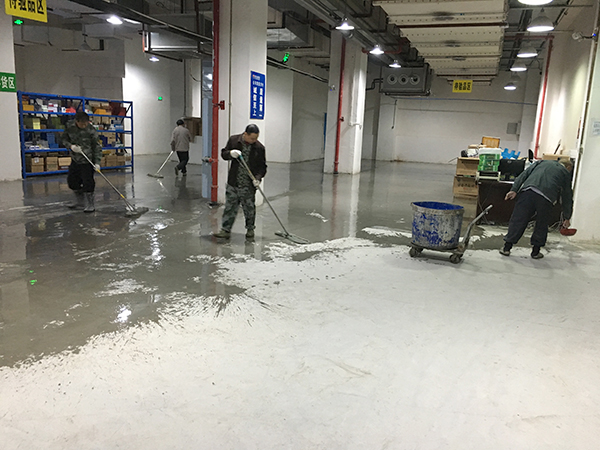 水泥地面起沙固化施工工艺:这种工艺解决水泥地面起沙相对更加方便,主要用于起沙程度不太严重的地坪。首先将地面清扫干净,去除表层浮灰,也可以用清水冲洗后晾干;然后将“金盾混凝土固化剂”泼洒到地面上,并用拖把来回拖动,让地面吸收足够的材料,最后再将地面冲洗干净。数小时后待地面干透会变得相对坚固耐磨,也就不容易起沙了。