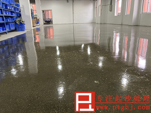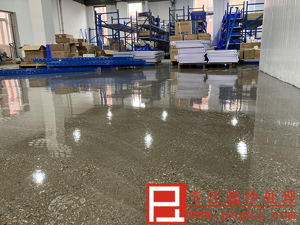 对于这种严重起砂的仓库水泥地坪我司建议采用“固化防护地坪”予以处理。首先用地坪打磨机打磨地面,去除表面松散骨料;然后泼洒粉末地面起砂处理剂增加地坪硬度和强度;再继续打磨地面后施工树脂保护剂。处理后的地坪不会起灰起砂,且坚固耐磨,洁净光亮,更加美观。