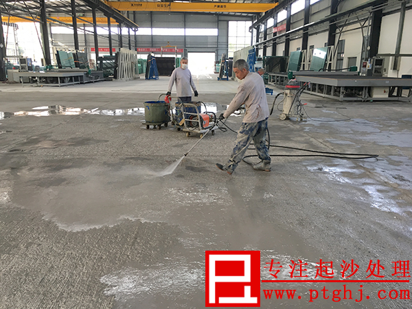 表面清洁,用高压水枪冲洗地坪表面,去除表层浮沙;