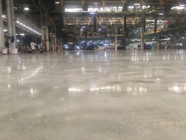 这种地坪能承受重型设备频繁碾压与车辆长期通行,兼具耐磨、防尘、抗渗的特性,且表面光泽度高、易于清洁,完美适配汽车制造车间的高负荷生产场景。