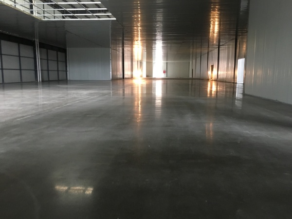 完工后的固化剂地坪呈现出细腻的哑光质感,表面致密坚硬、光泽通透,能清晰反射灯光与建筑轮廓。相比传统地坪,它彻底解决了起尘起砂问题,日常清洁仅需清水擦拭,大幅降低了医药车间的卫生维护成本。